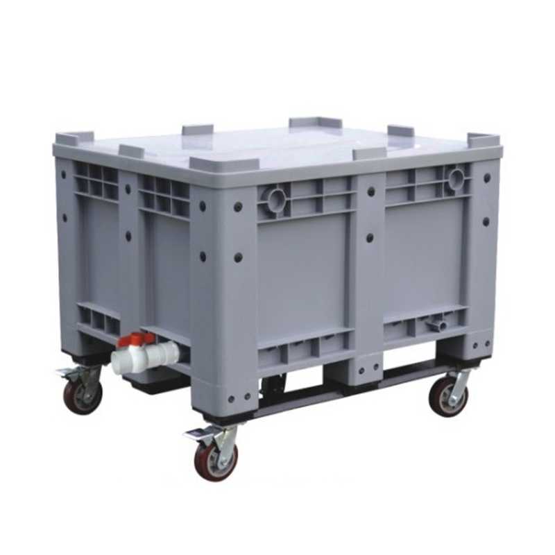 - Bulk packing, Multiple Sizes and Colors, LIdded pallet boxes, Plastic pallet.